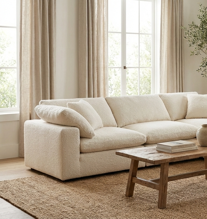 Upholstery: Performance Fabric (Stain-resistant Boucle or Linen Blend)